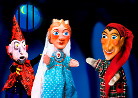 Handpuppentheater bei dem das traditionelle Märchenmotiv